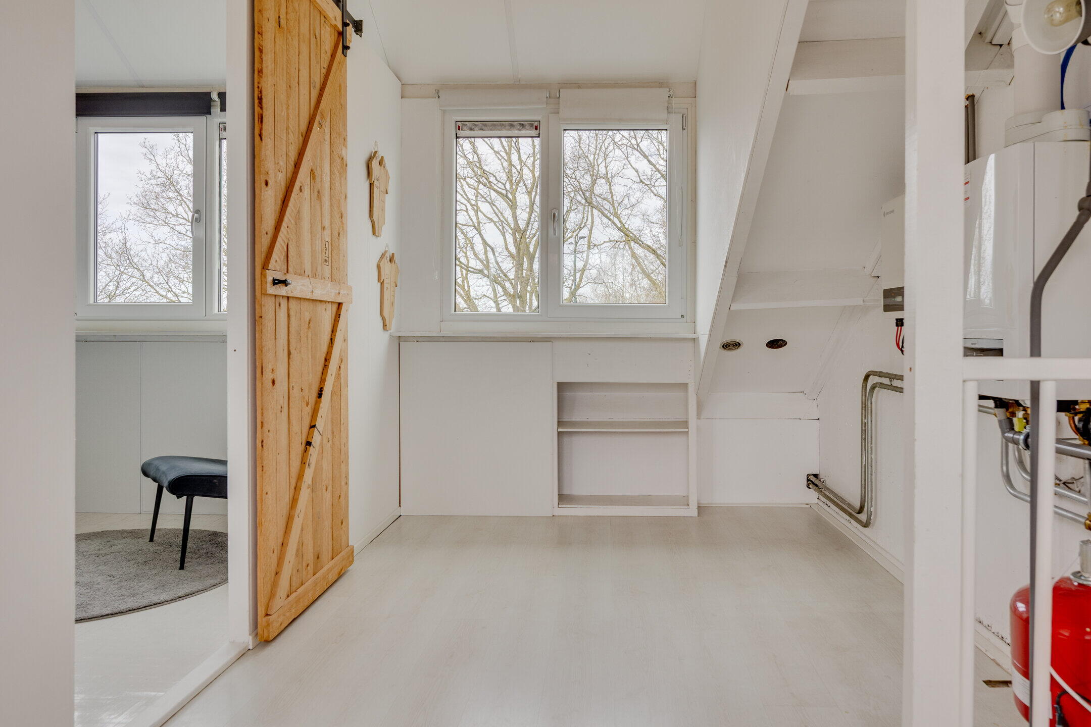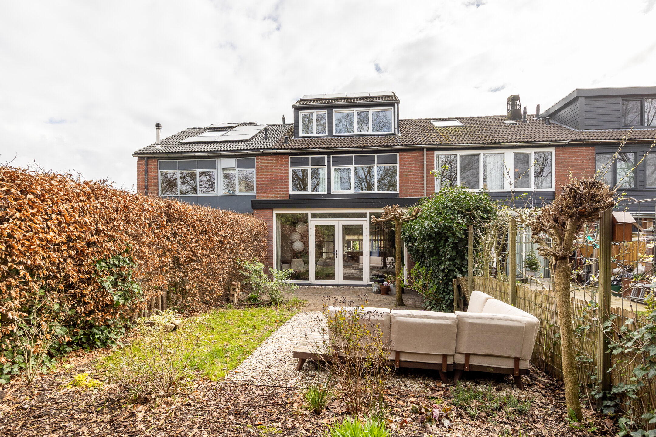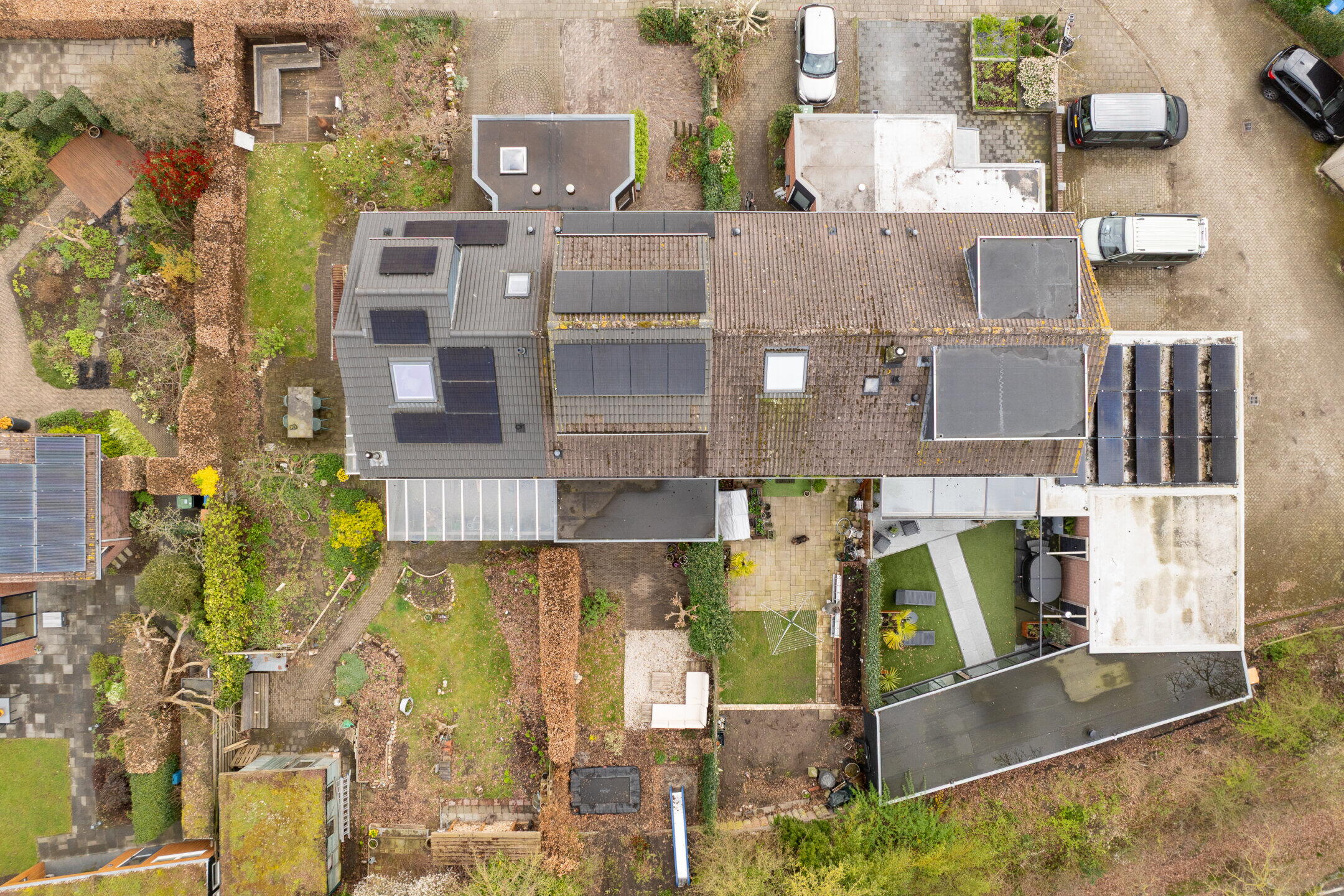 De verzorgde achtertuin op het westen biedt een prettige plek voor lange avonden buiten. De aangebouwde stenen berging aan de voorzijde van de woning is voorzien van elektra — handig voor opslag of een werkplek. Buitenkozijnen en -schilderwerk zijn in oktober 2025 professioneel uitgevoerd. De voormalige houten geveldelen zijn vervangen voor onderhoudsvrije Keralit panelen. De dubbele verhoogde nok is uitgevoerd in kunststof.
