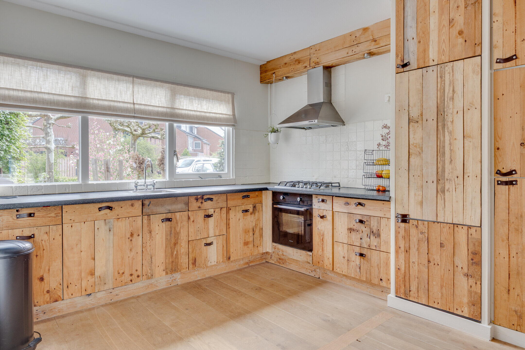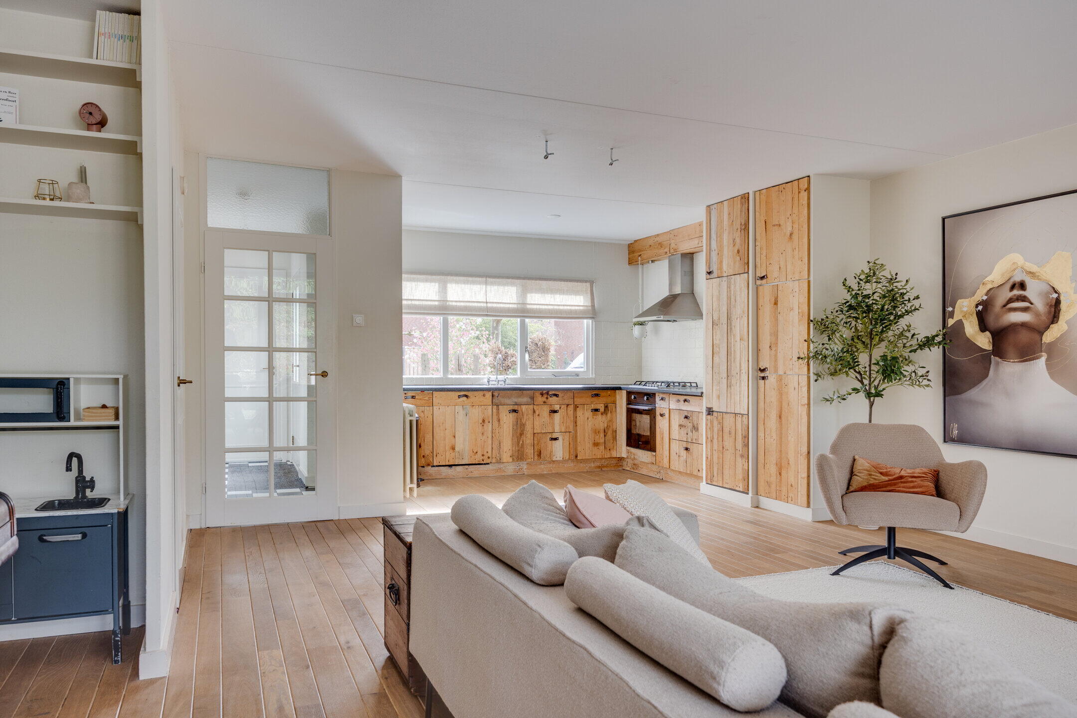 Zodra je binnenstapt, voelt de woning meteen verzorgd en praktisch aan. De woningen aan de Tolick zijn breed en door de uitbouw (met vernieuwde kunststof pui) is een fantastische woonkamer ontstaan met voldoende leefruimte voor een fijne eethoek én een ruim zitgedeelte. Aan de voorzijde van de woning is de ruime L-vormige hoekkeuken, uiteraard voorzien van alle gebruikelijke inbouwapparatuur — de oven is in 2026 vernieuwd. Vanuit de keuken heb je ook veel lichtinval en uitzicht op het groen.