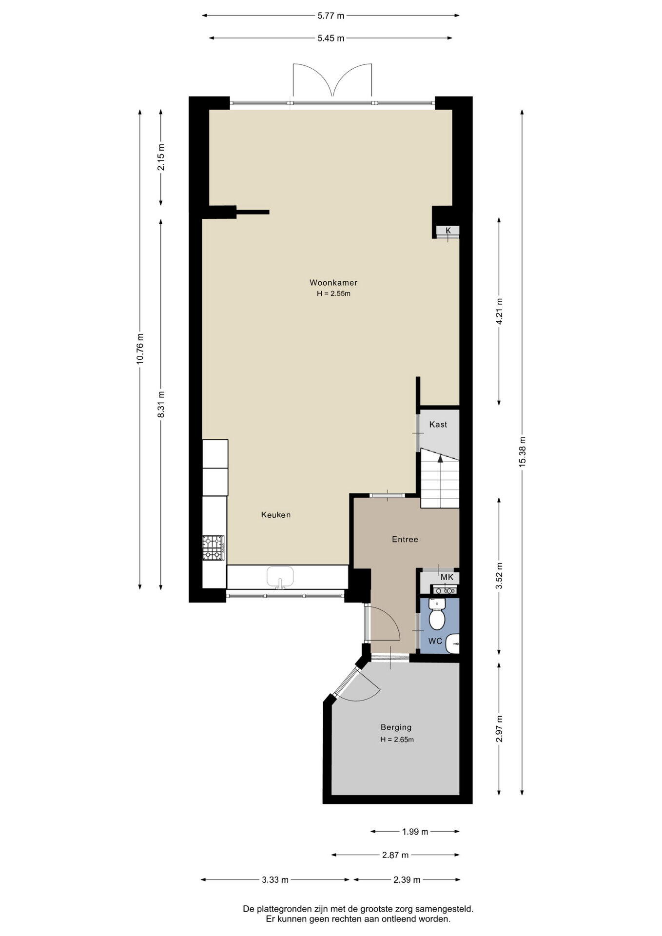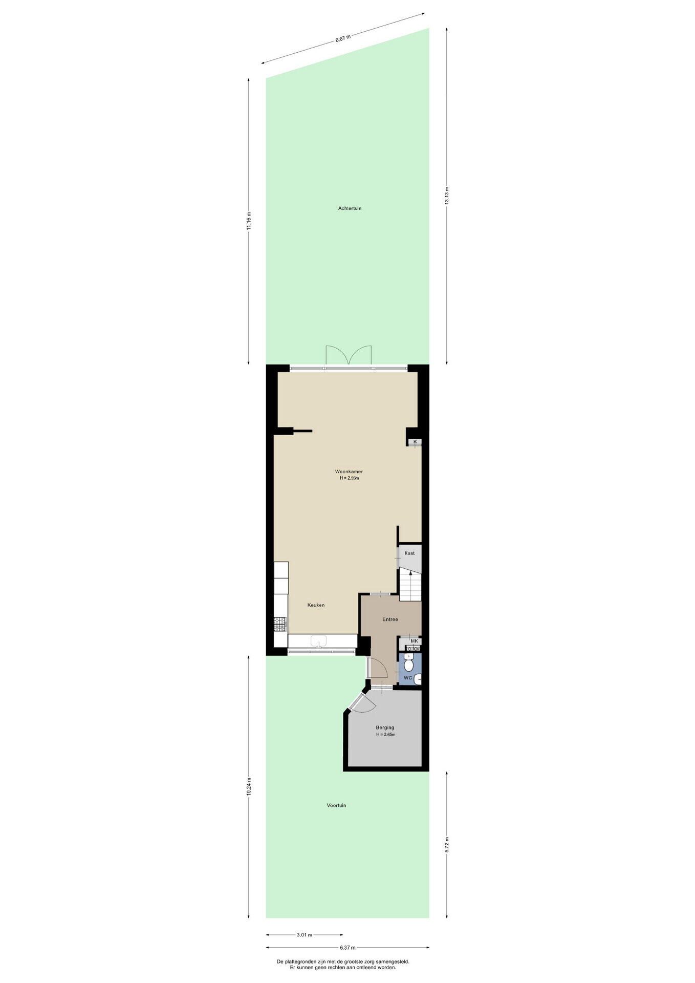 - 65 m² (12 meter diep en 6.3 meter breed)