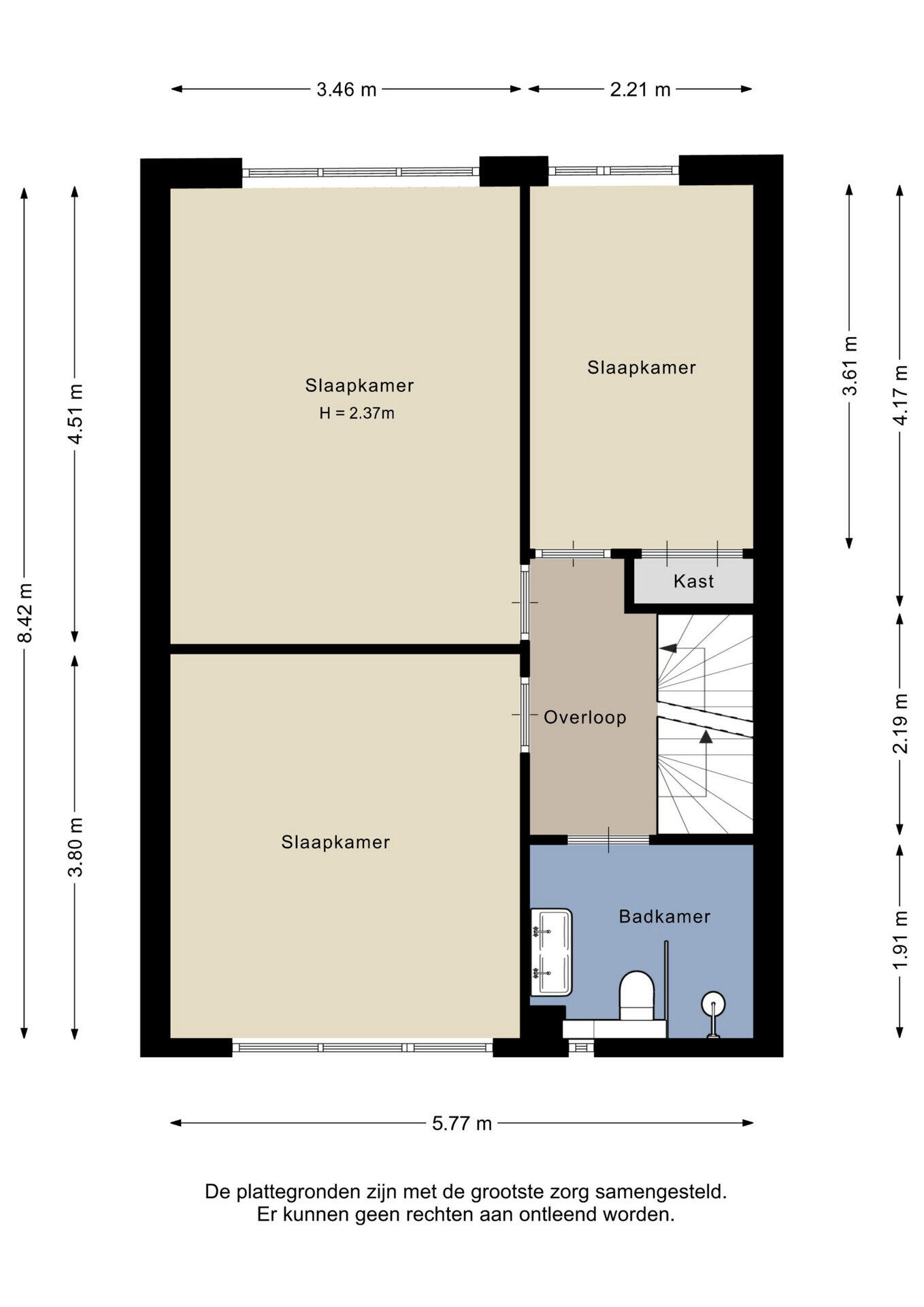 Op de eerste verdieping vind je drie slaapkamers en een nette badkamer met inloopdouche, toilet en wastafelmeubel. De tweede verdieping telt dankzij de verhoogde nok nog eens twee ruime slaapkamers, de ruime voorzolder is ideaal te gebruiken als was- en bergruimte. Dit huis is ideaal voor een (op)groeiend gezin, thuiswerkers of mensen die gewoon graag veel ruimte om zich heen hebben.